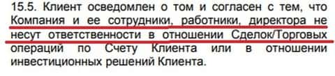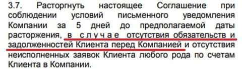 В пункте 3.7 дилинговый центр Инвест Лайф упрятал очередную ловушку, которая предусматривает положение дел клиента сего брокера, таким образом, что онлайн-пользователь потеряет не только собственные денежные средства, но и еще будет должен этому интернет-лохотрону, из-за чего с кухней расторгнуть соглашения не получится.