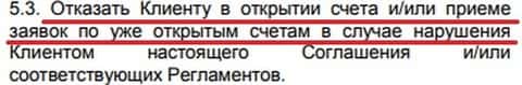 Дальнейшие подводные камни регламента брокерской организации Инвест Лайф были найдены в 5 разделе в виде пункта 5.3. Под это положение данный forex-лохотрон в целом может подставлять такой негатив в обслуживании клиентов как отказ на выплату денежных средств, потому как в принципе, здесь не уточняется какие конкретно заявки будут не приняты брокером Invest Life. Возможно именно заявки на вывод денег. И уж поверьте, подставить клиента таким образом, что он нарушит сей договор, для жуликов не составляет особой сложности.