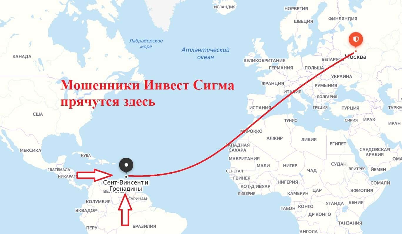 Местом регистрации Invest Sigma является один из оффшоров, а именно остров Сент-Винсент и Гренадины, где зарегистрировано огромное количество аналогичных лохотронов.
