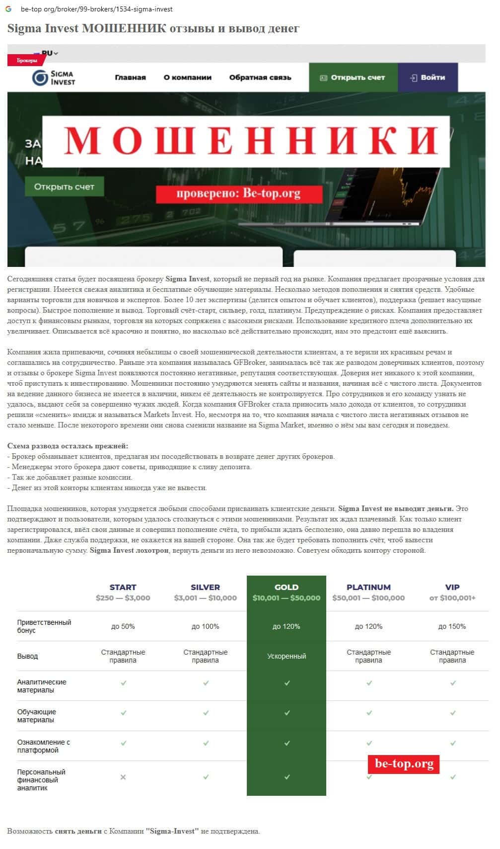 Инвест Сигма - обзоры аферистов на других интернет-порталах