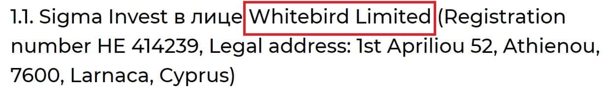 Юридическое лицо Whitebird Limited владеет мошенническим сервисом invest-sigma com, компании Invest Sigma, у которой оффшорная регуляция.