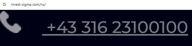 Мошенники Инвест Сигма на своем дырявом сайте указали номер контактного телефона, с которого навязчиво названивают потенциальным жертвам: