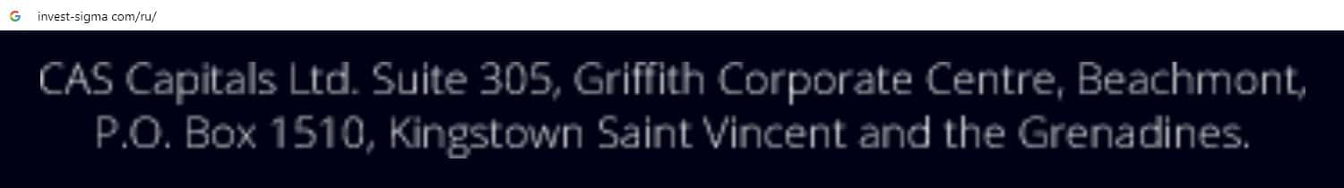 На сайте аферистов так же указано еще одно юридическое лицо Cas Capitals Ltd, которое управляет интернет-лохотроном Инвест Сигма.