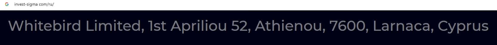 Шулера Инвест Сигма указали адрес места регистрации своей компании, который наверняка липовый:
