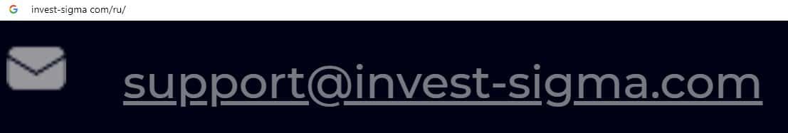 Аферисты Invest Sigma на своем официальном онлайн-ресурсе указывают адрес электронной почты, а именно: