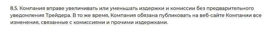 Скам-контора Инвест Сигма вправе списывать любую сумму со счета клиента в качестве комиссии, аргументируя это данным пунктом в договоре.