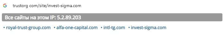 Конторы Инвест Сигма и International Trust Group находятся на одном IP-адресе, что является подтверждением того, что это одна группа мошенников.