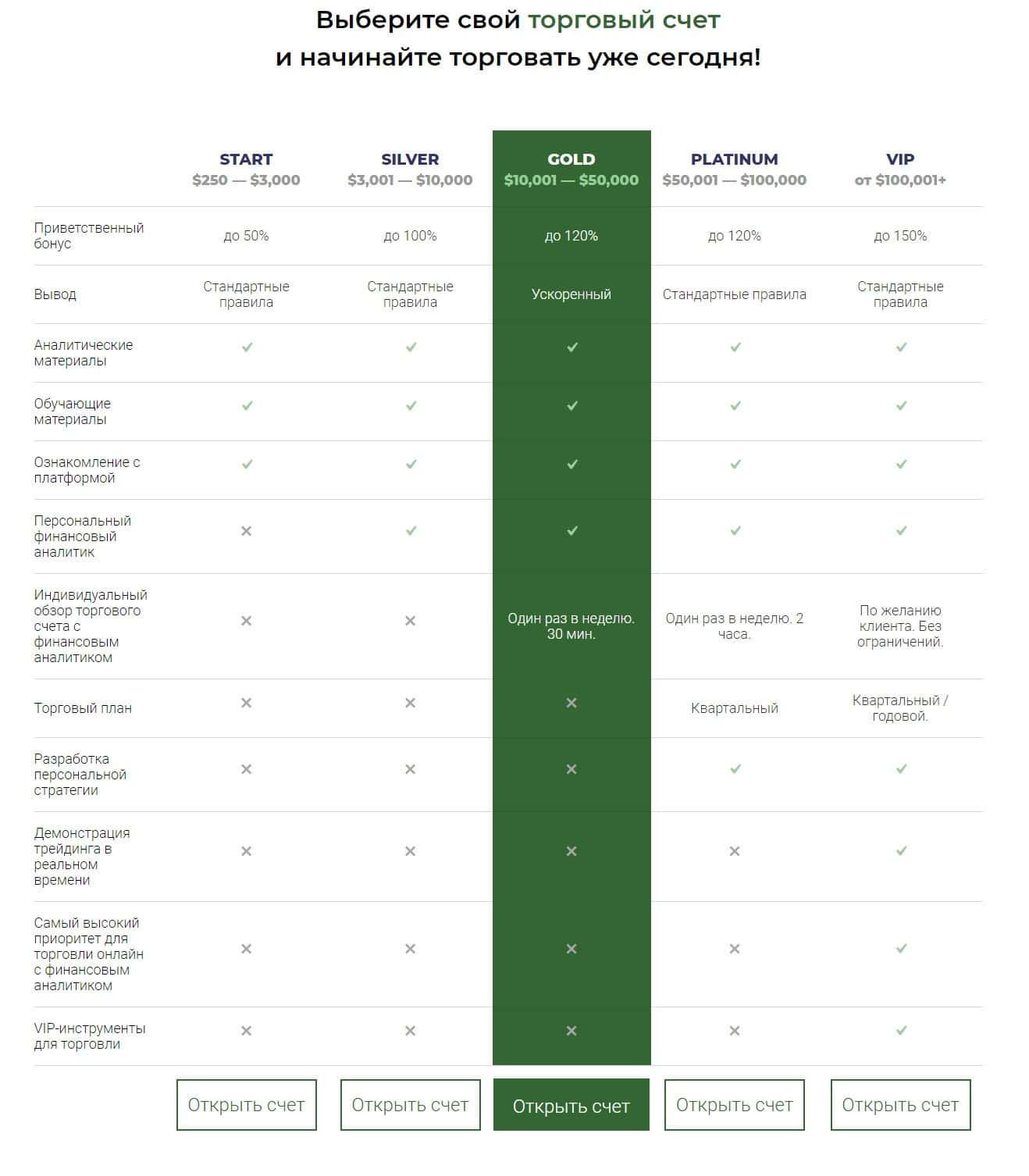 - Типы торгового счета на онлайн-портале шулеров Invest Sigma