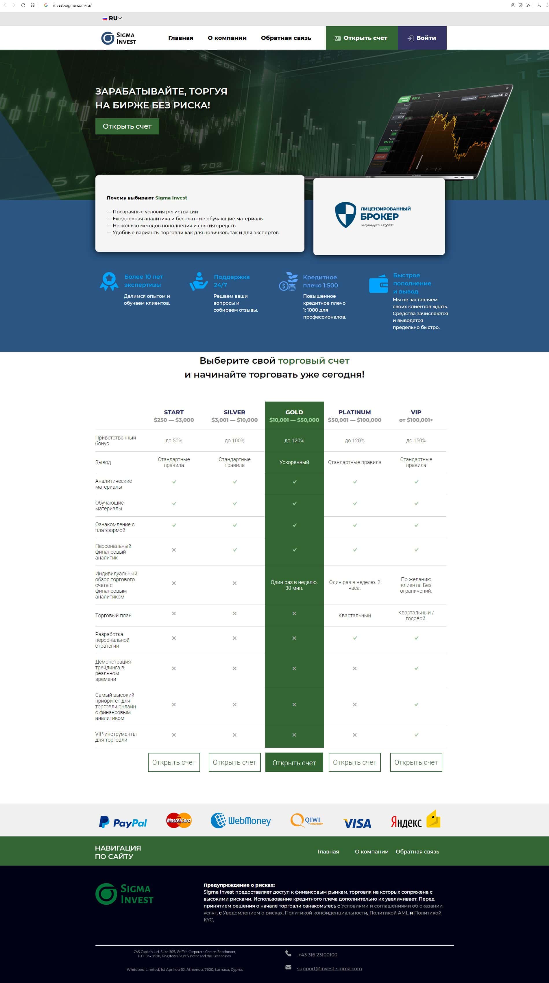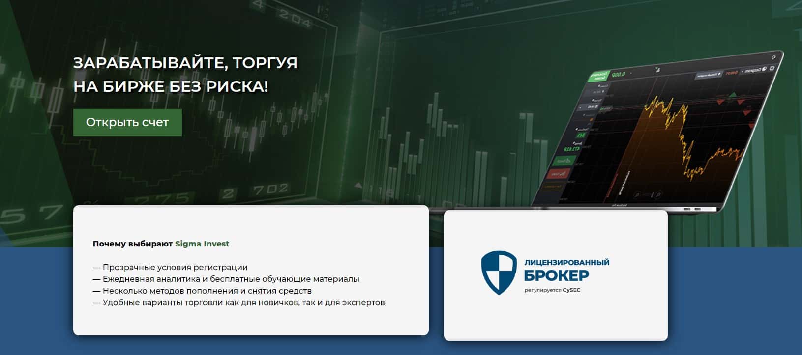 - Обзор главной страницы мошеннической организации Invest Sigma