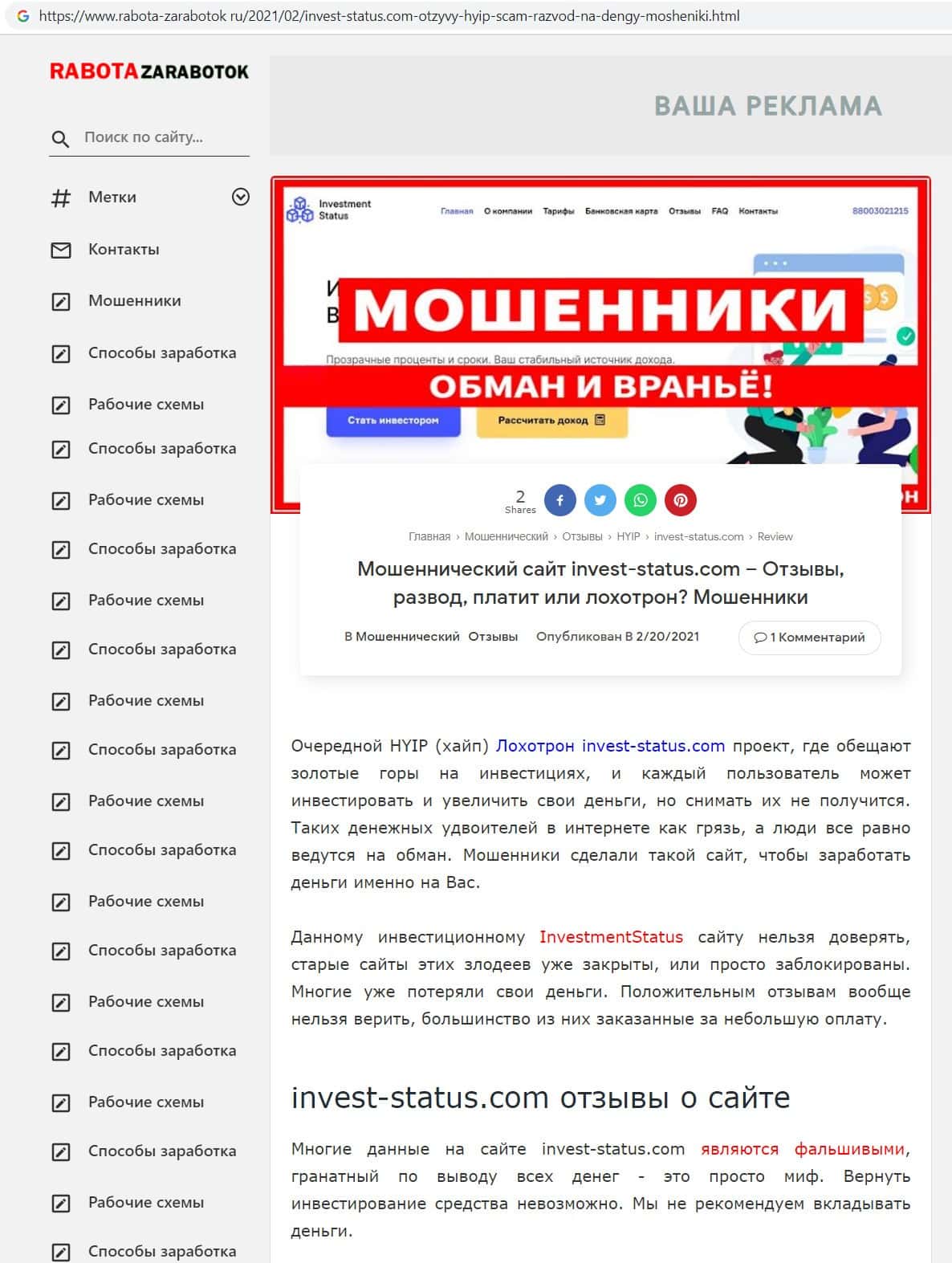 rabota-zarabotok ru - информация о лохотроне Invest Status