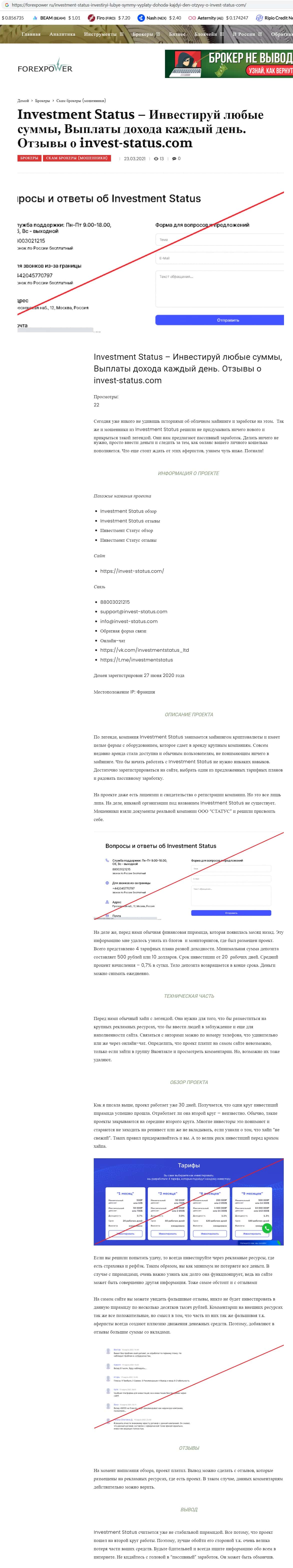 Отзывы интернет - пользователей о мошеннической компании Invest Status