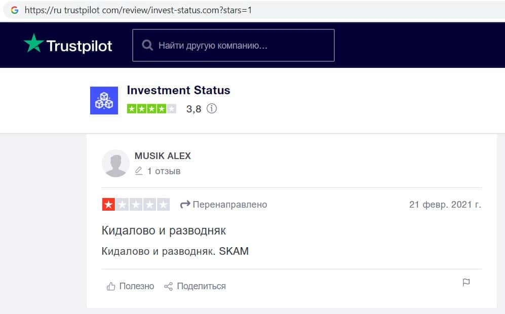 ru trustpilot com - сайт с отзывом о жуликах Инвест Статус