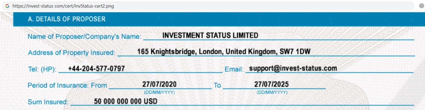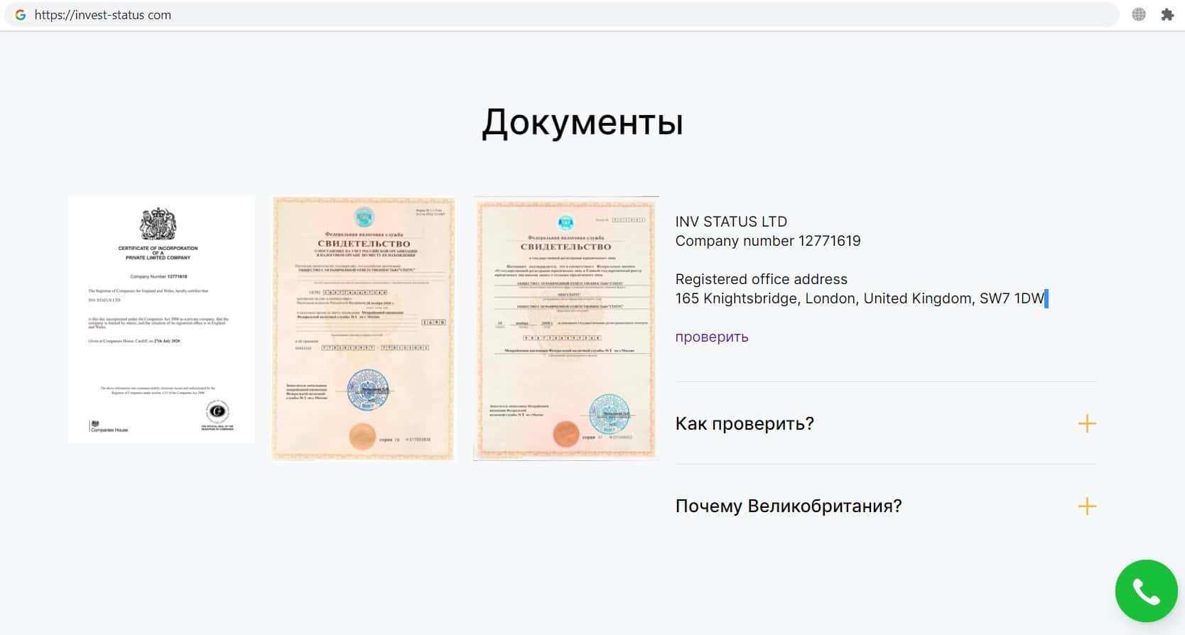 Компания мошенников Invest Status указала, что зарегистрирована в Лондоне, но не стоит доверять данной информации, так как жулики часто используют фальшивые адреса.