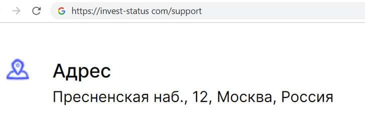 Ещё махинаторы Invest Status указали адрес своего главного офиса, но жулики могут его просто арендовать, и как только контора закроется, аферисты освободят помещение. Адрес: