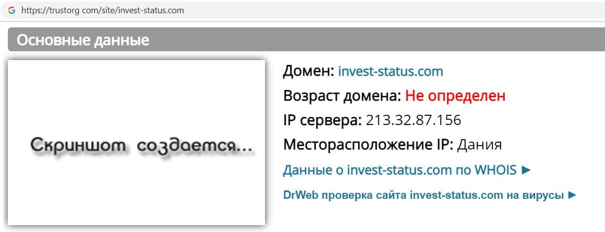 - Информация о возрасте главного сайта лохотронщиков Инвест Статус