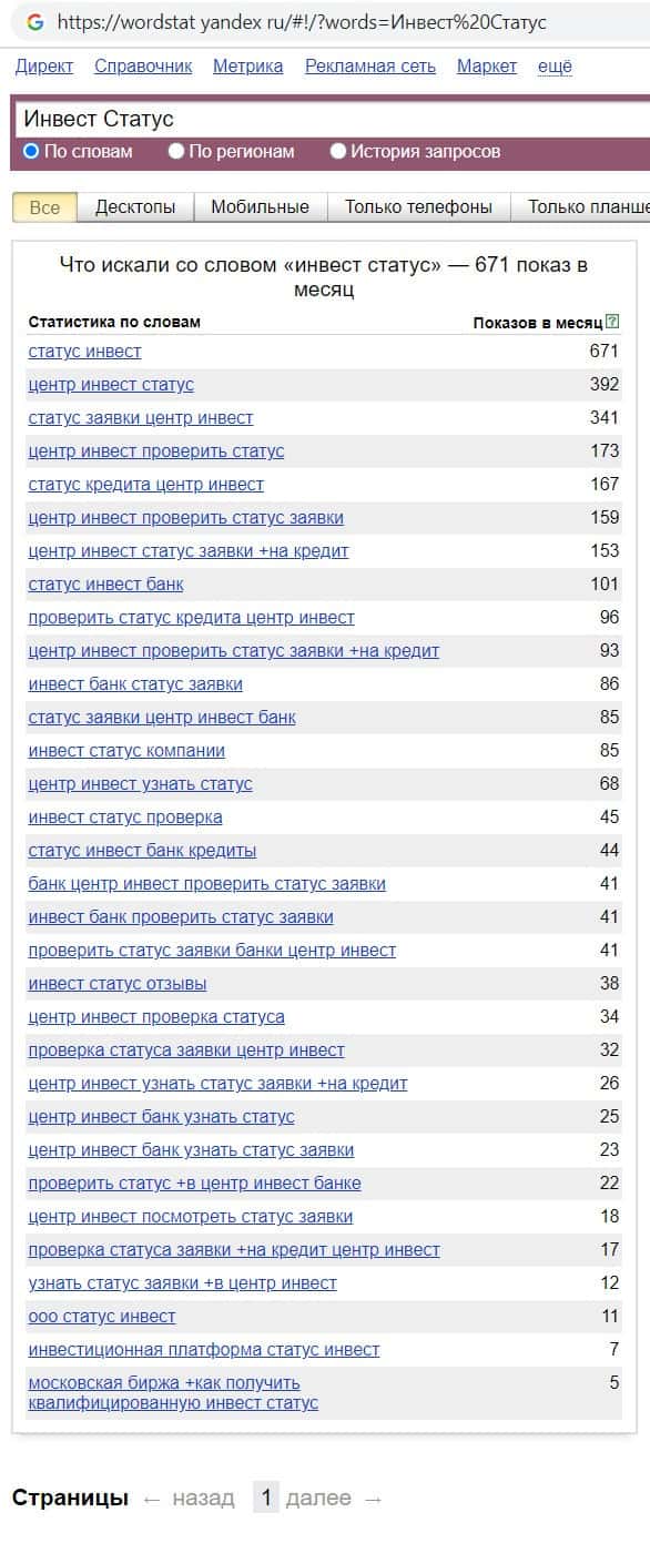 Так же мы проверили количество запросов фирмы жуликов Invest Status по русскоязычному названию конторы, а именно "Инвест Статус". 671 раз пользователи выполнили этот запрос.
