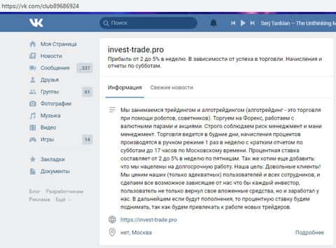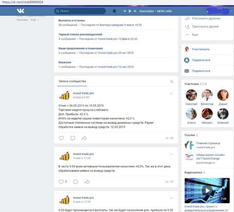 - Взгляд на страницу шулеров Инвест Трейд в социальной сети Вконтакте