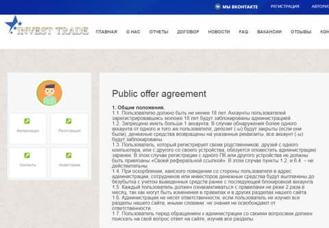 - Условия сотрудничества с мошенниками Инвест Трейд