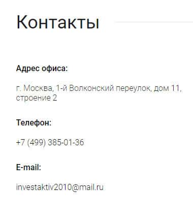Далее представлена контактная информация мошенников ИнвестАктив, которую они опубликовали на своем официальном сайте и не следует брать трубку если звонит этот номер: