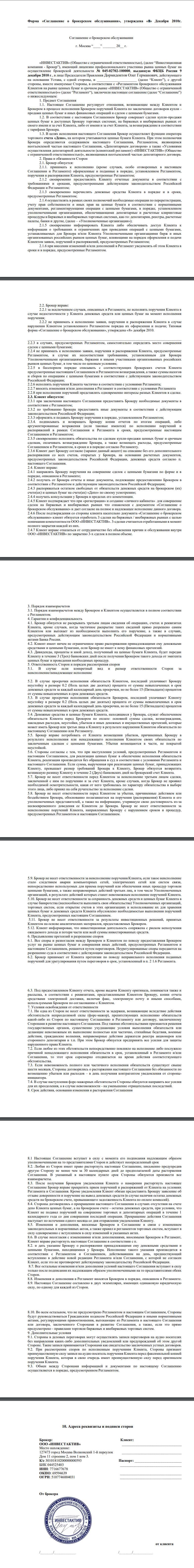 Ниже вы можете ознакомиться с полной версией соглашения о брокерском обслуживании, которое предлагает мошенническая контора ИнвестАктив своим клиентам.