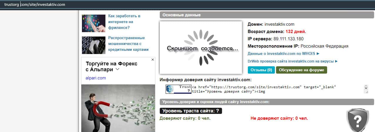 Мошенническая контора Инвест Актив работает не более года и уже успело опрокинуть ни одну сотню людей. Об этом и пытается донести ресурс по проверке доменов trustorg com.