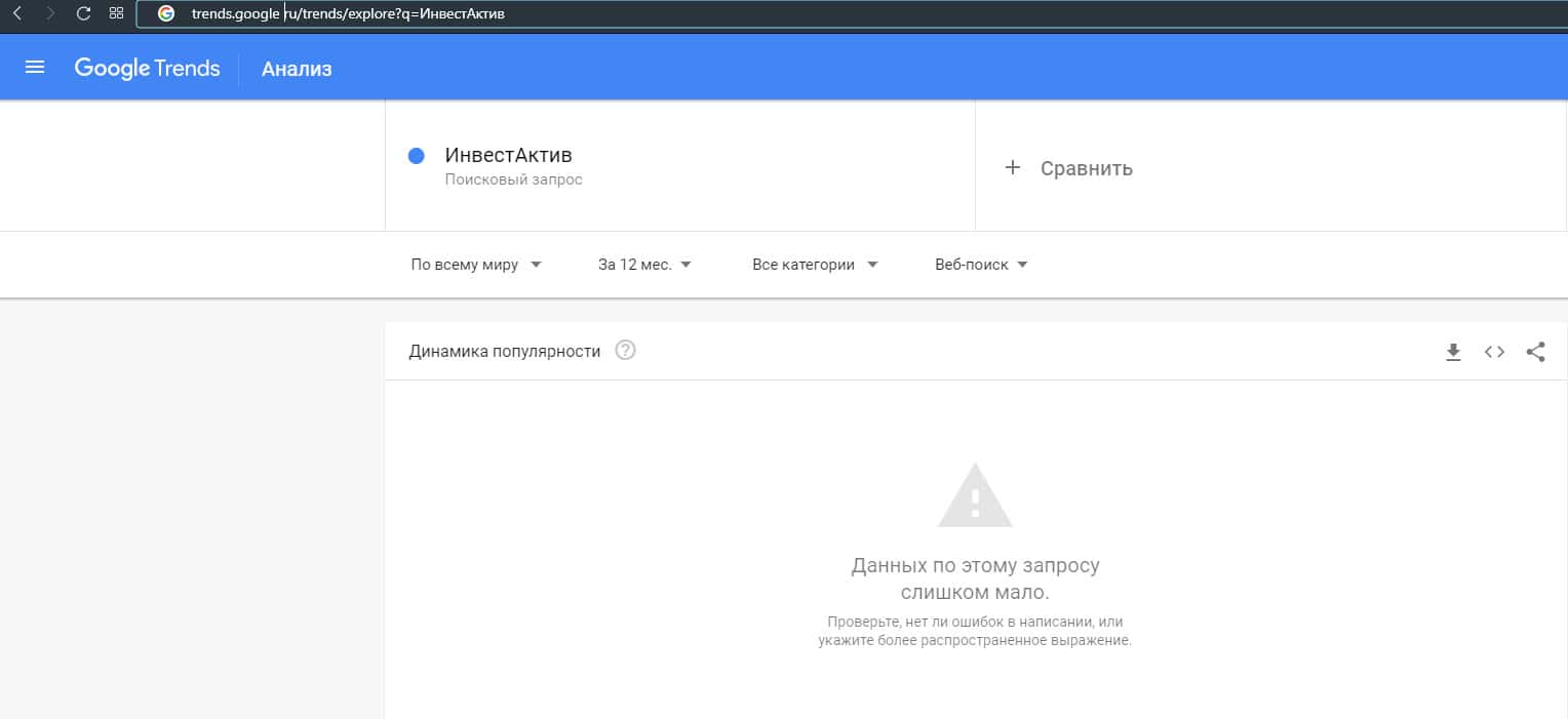 Ну и конечно же ситуация с изменением запроса с точкой "investaktiv.com", также не порешало количество показов по версии Гугл Трендс.
