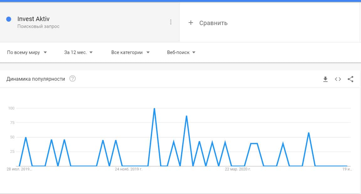 По поводу запроса бренда "InvestAktiv", шулерская организация не набрала популярности, так как в Гугл даже не было ни разу ни одного запроса.