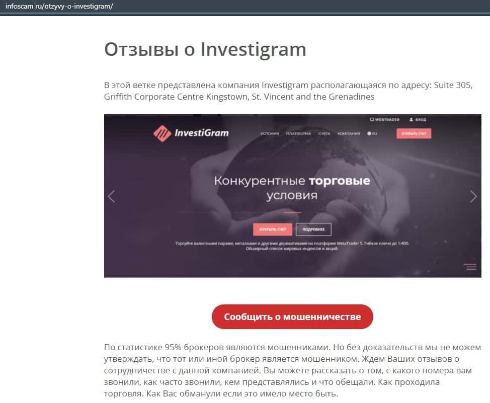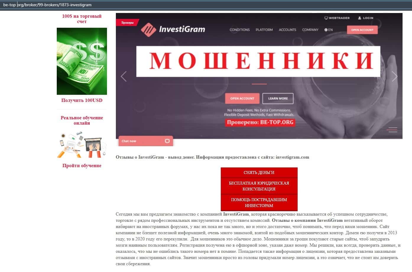 В данном обзоре описывается, что контора InvestiGram рекламирует безопасные инвестиции, а когда доходит дело до реальной деятельности, то они занимаются разводом.