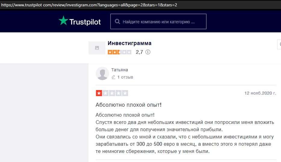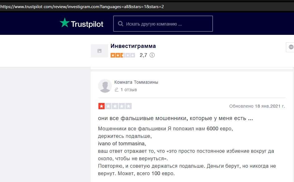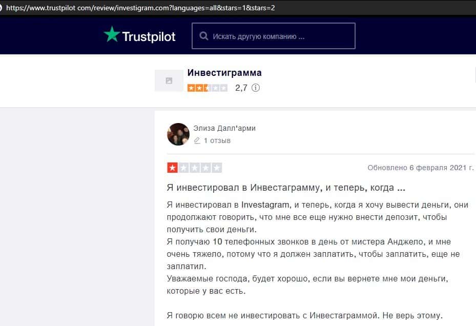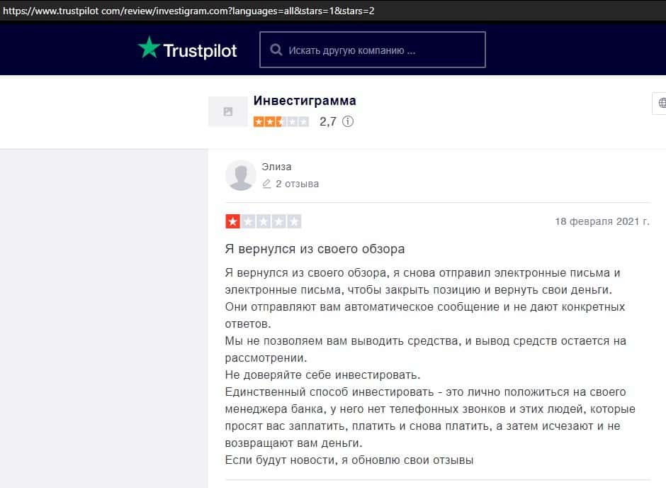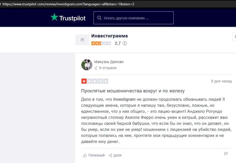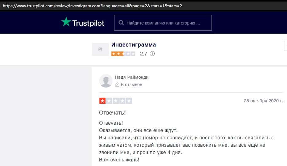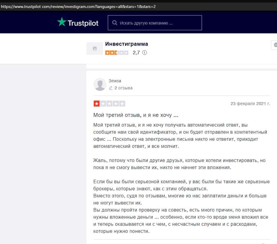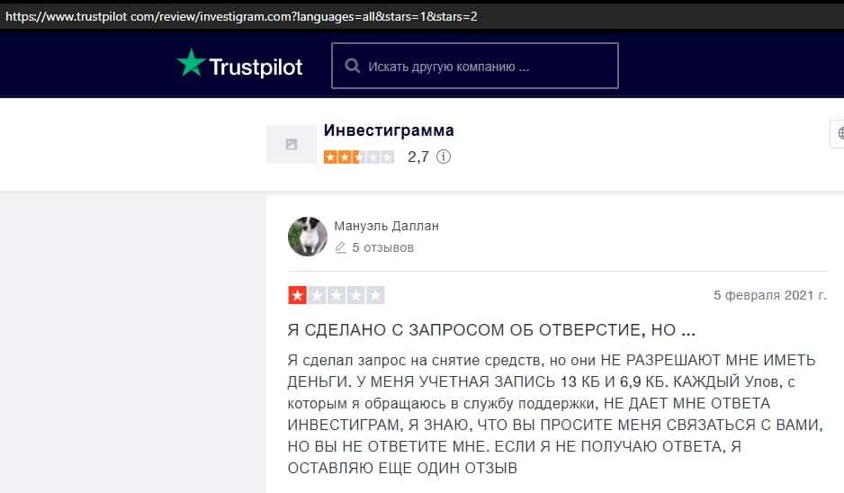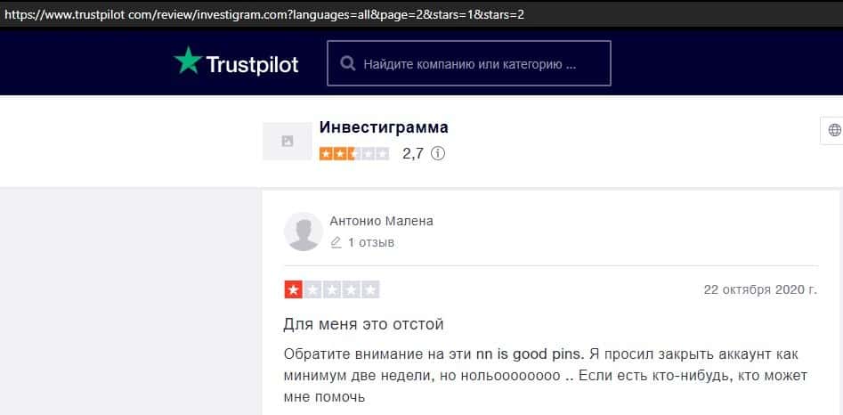 Автор следующего отзыва отметил, что конторе InvestiGram не нужно доверять. По его мнению это один из самых грубых брокеров, с которыми ему только приходило сталкиваться.