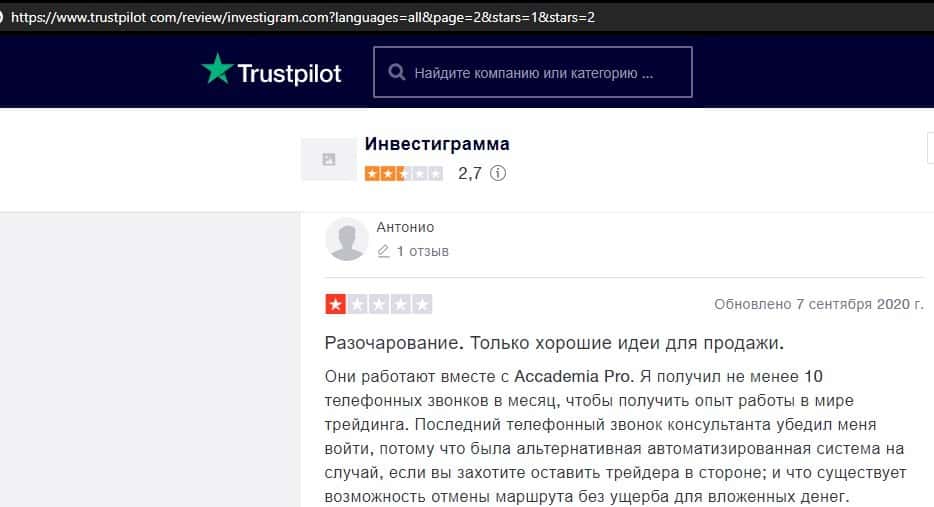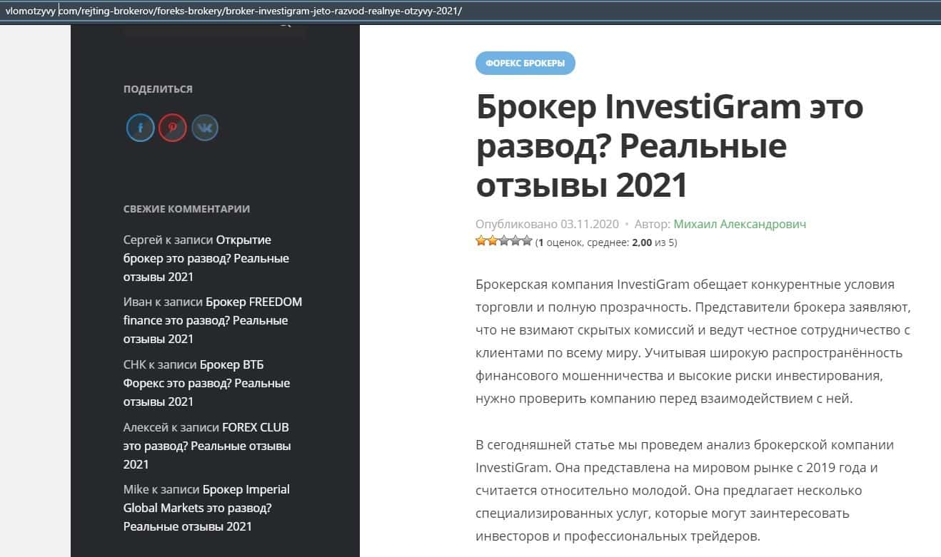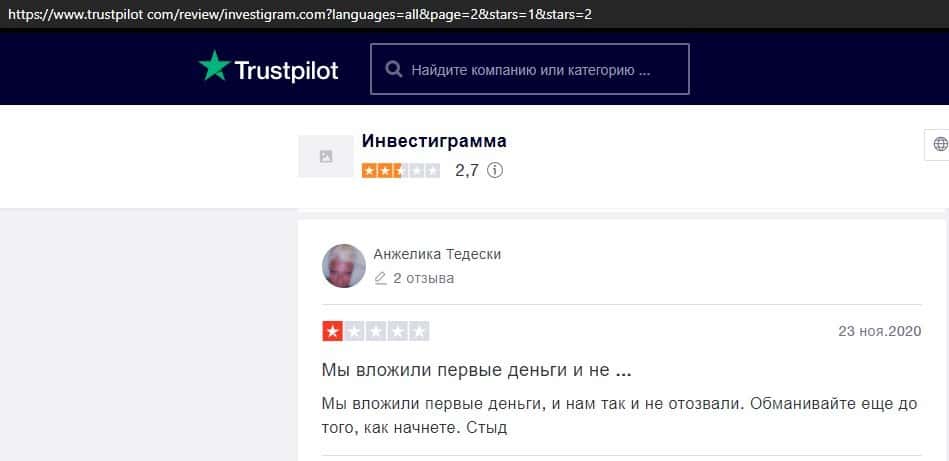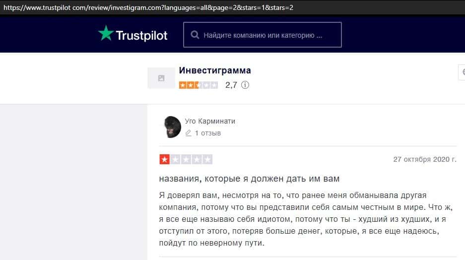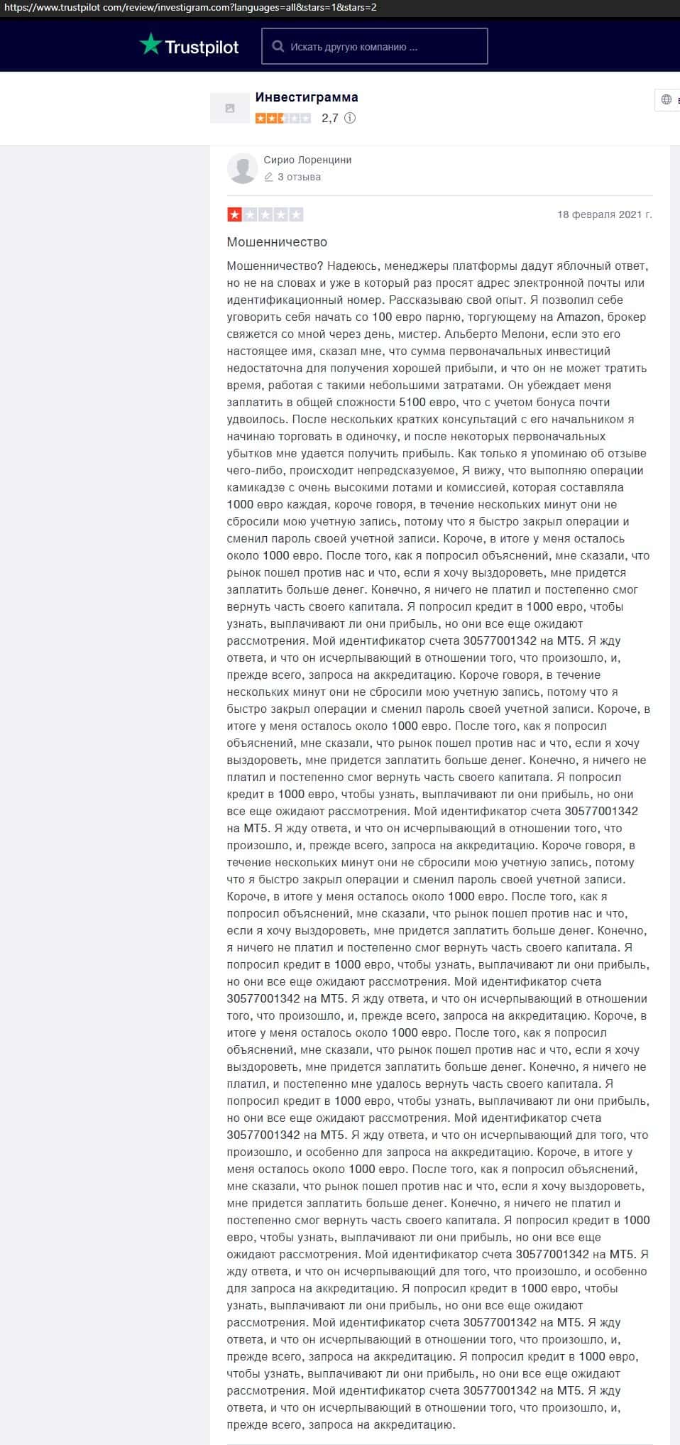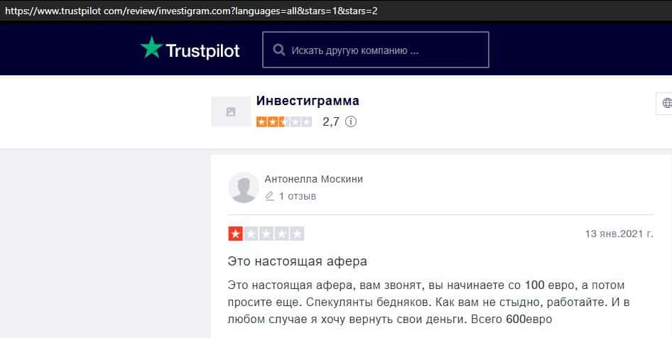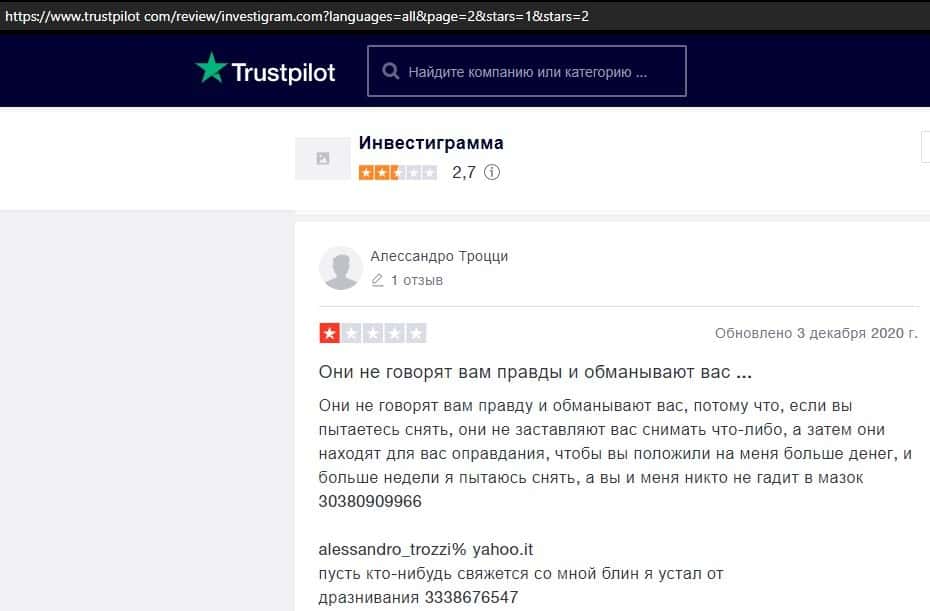 Автор следующего отзыва отметил, что конторе InvestiGram не нужно доверять. По его мнению это один из самых грубых брокеров, с которыми ему только приходило сталкиваться.