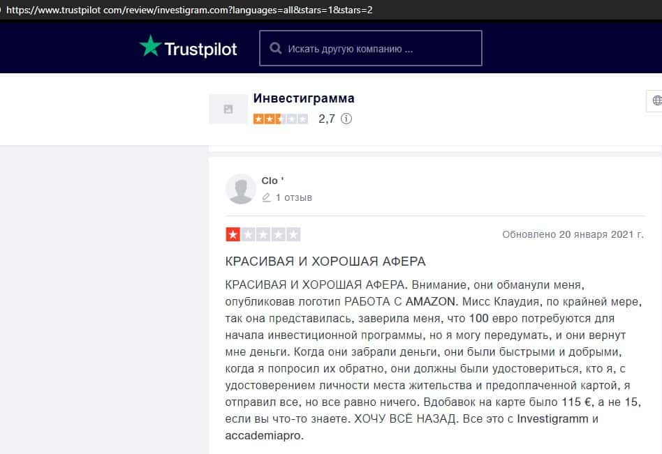 В данной публикации клиент описал, что контора InvestiGram развела его на 10 000 евро, хотя поначалу он и не думал что разведут. Естественно мошенники не вернули ни цента.