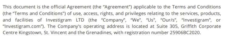 По поводу информации о компании, которая владеет форекс-мошеннической конторой Инвести Грам то здесь выступила Investigram LTD с регистрацией в Сент Винсент и Гренадины.