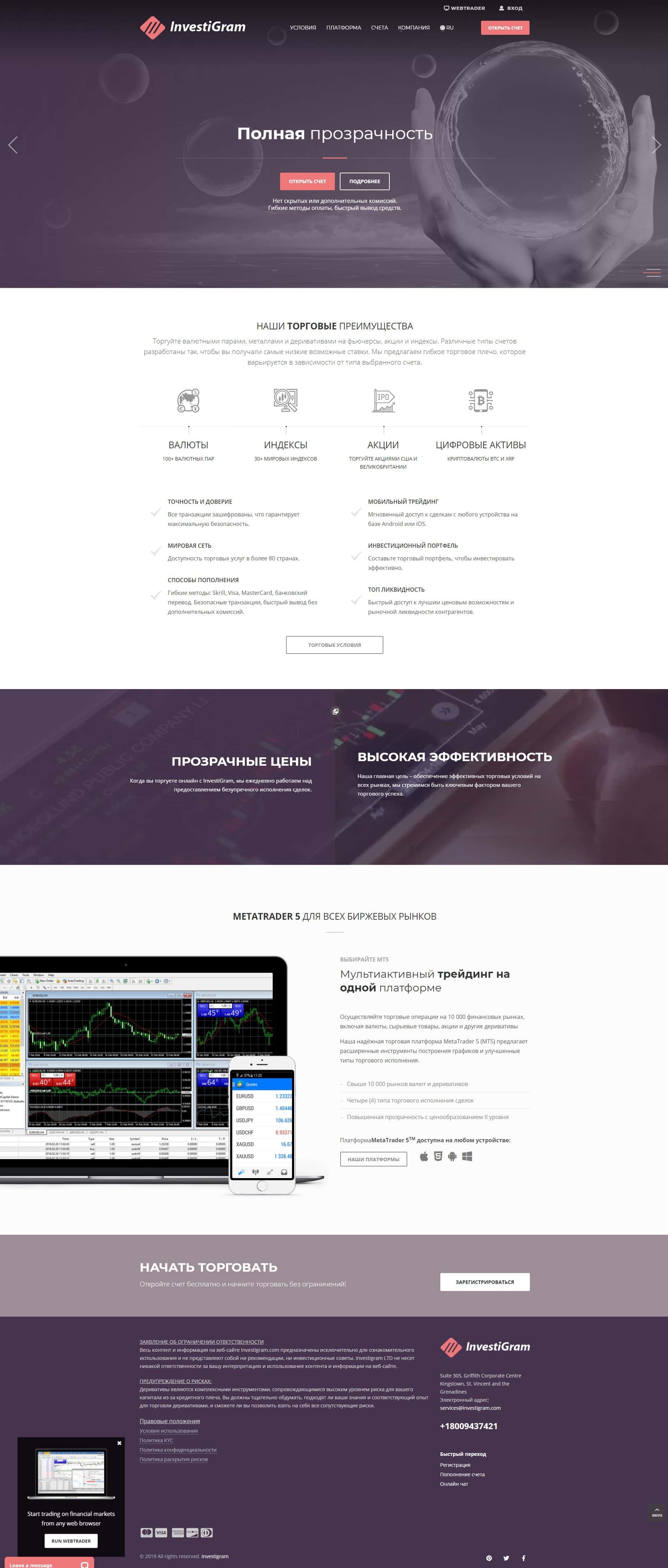 Далее представлен официальный сайт форекс-лохотрона Инвести Грам, с помощью которого они привлекают внимание пользователей сети и в последующем делают из них жертв.