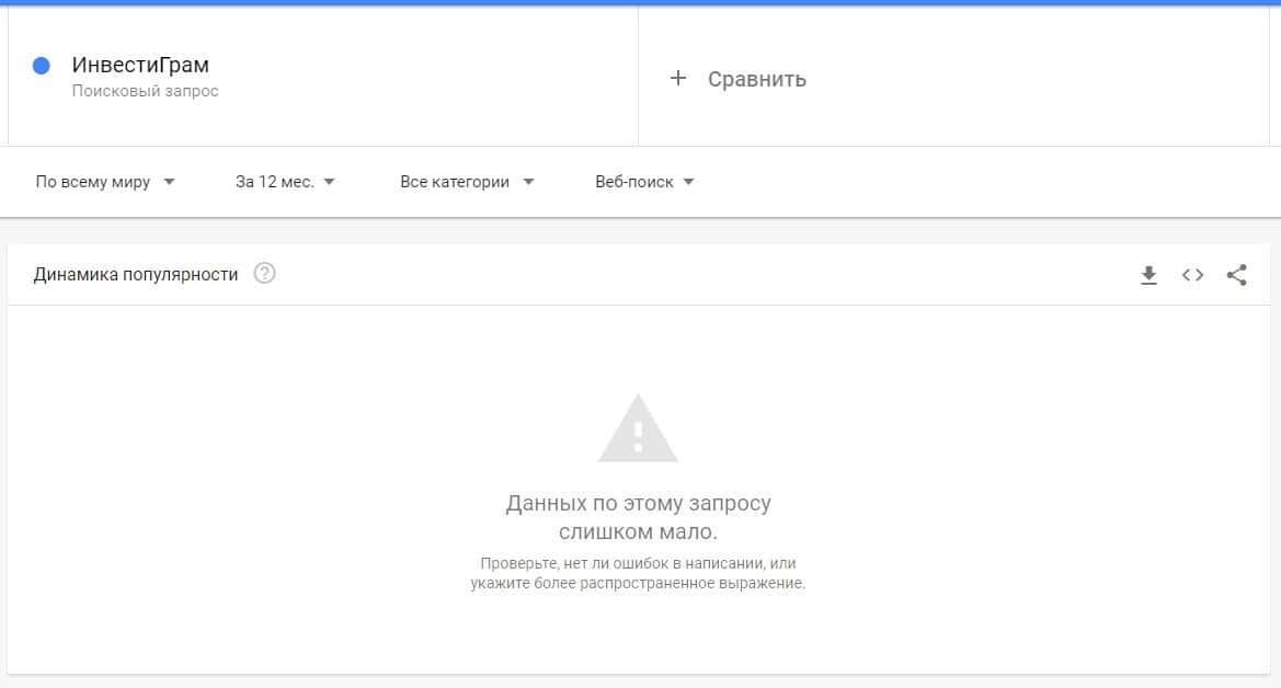 Что касается запроса бренда "Investi Gram", то здесь нет запросов за последнее время, так как в поисковой системе Гугл он не популярен.