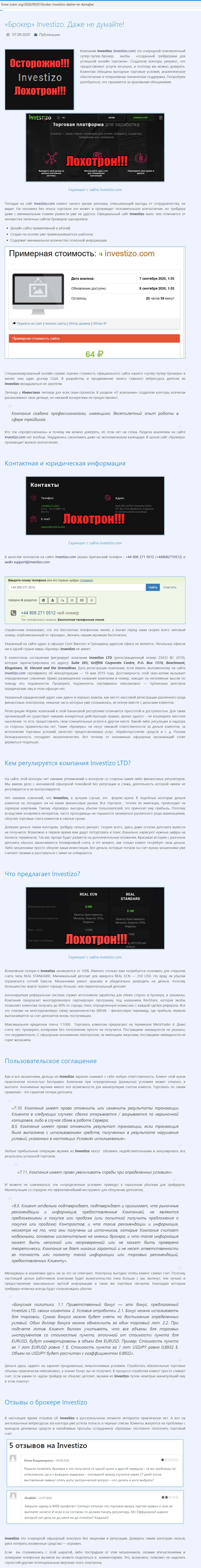 - Обзор оффшорного лохотрона Investizo на сайте Forex-Scam Org
