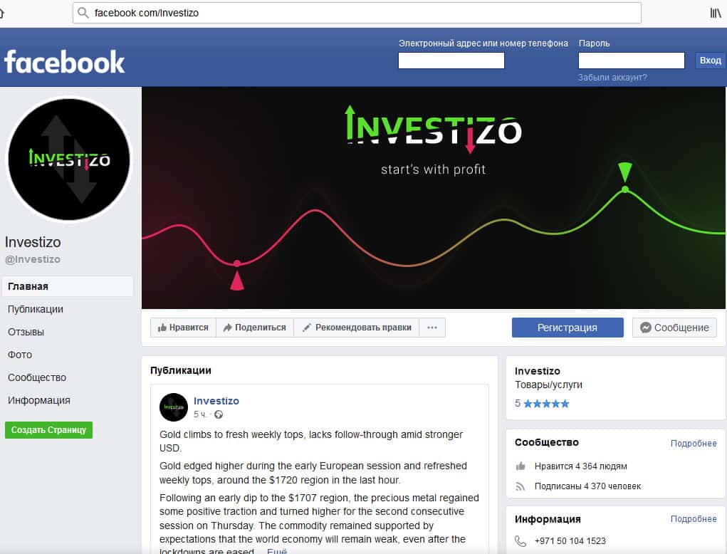 - Аферюги Investizo ведут группу в Facebook, чтобы дополнительно заманивать в свой лохотрон побольше народу