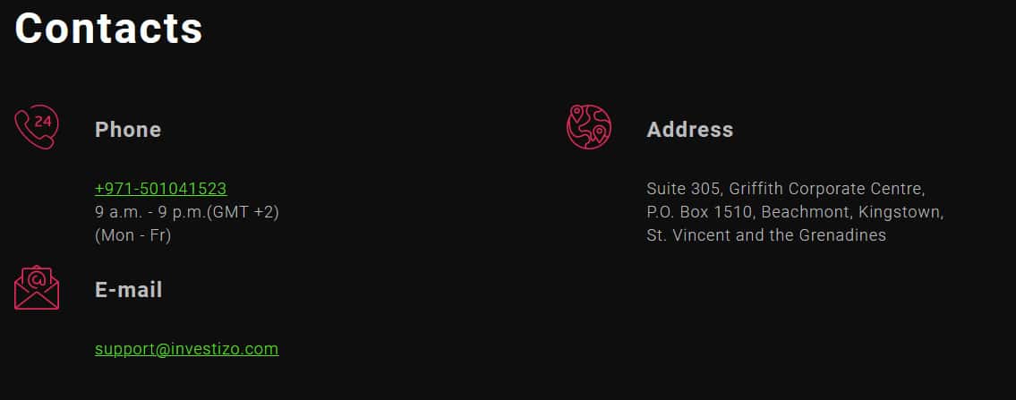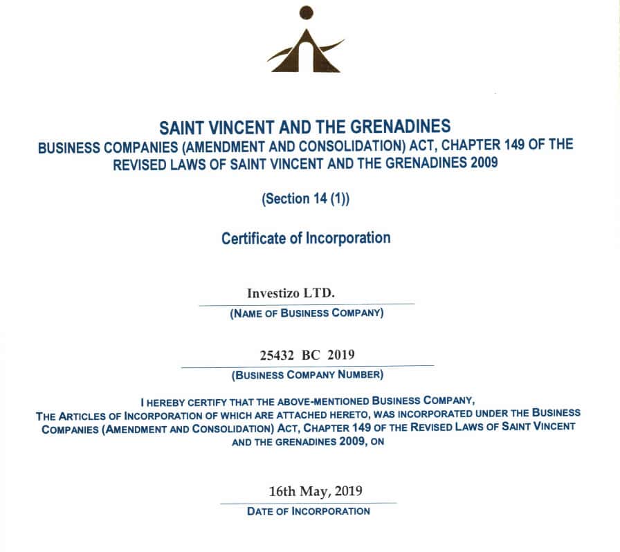 Лицензии, которая разрешает Investizo вести брокерскую деятельность на территории России и других стран СНГ нет. Вместо этого они показывают у себя на сайте лицензию с офшорной зоны Сент-Винсент и Гренадины. По сути, это незаконная деятельность просто и несет для вас серьезные риски.