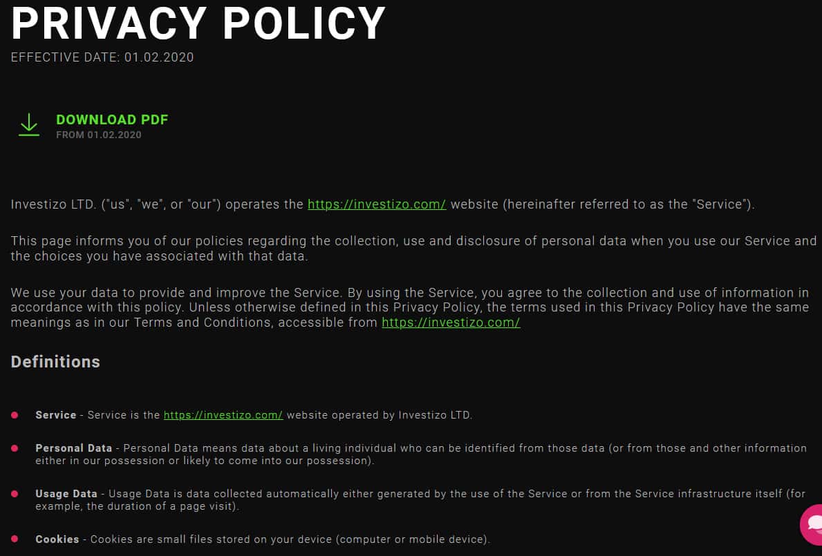 С политикой конфиденциальности дела в Investizo обстоят точно также, как и с договором - оно не имеет никакой силы. Жулики запросто передадут в будущем ваши персональные данные в руки третьим лицам. А потом вам начнут приходить разные письма счастья и телефонные звонки. Так что лучше всего вообще с ними на связываться.