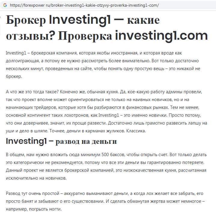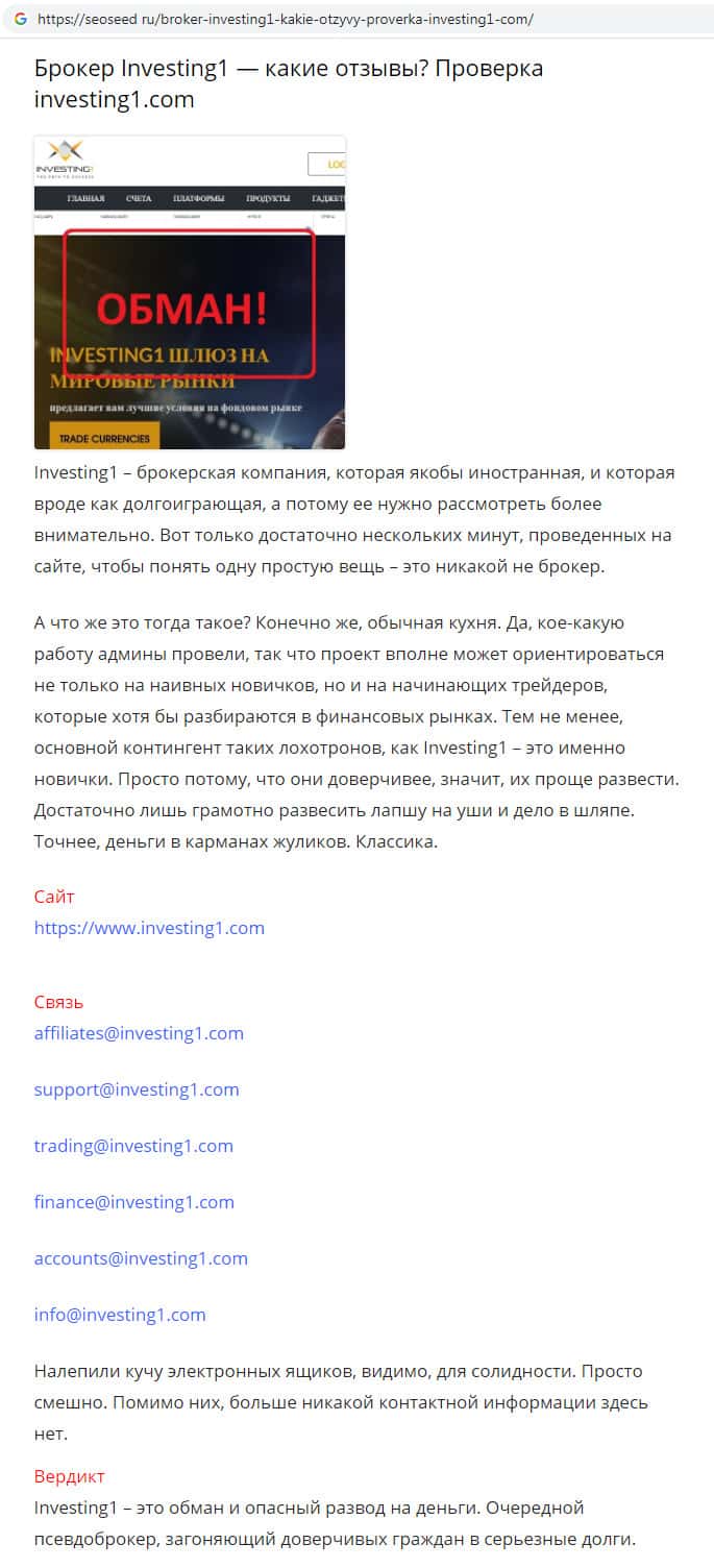 - Не ведитесь на обман в интернет-сети со стороны аферистов Investing1 !!!
