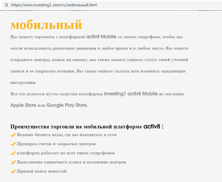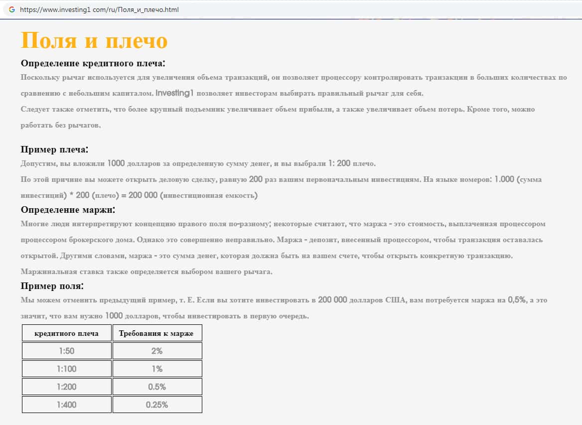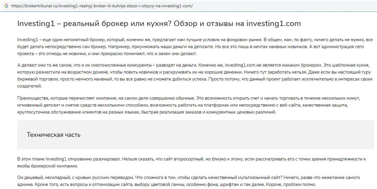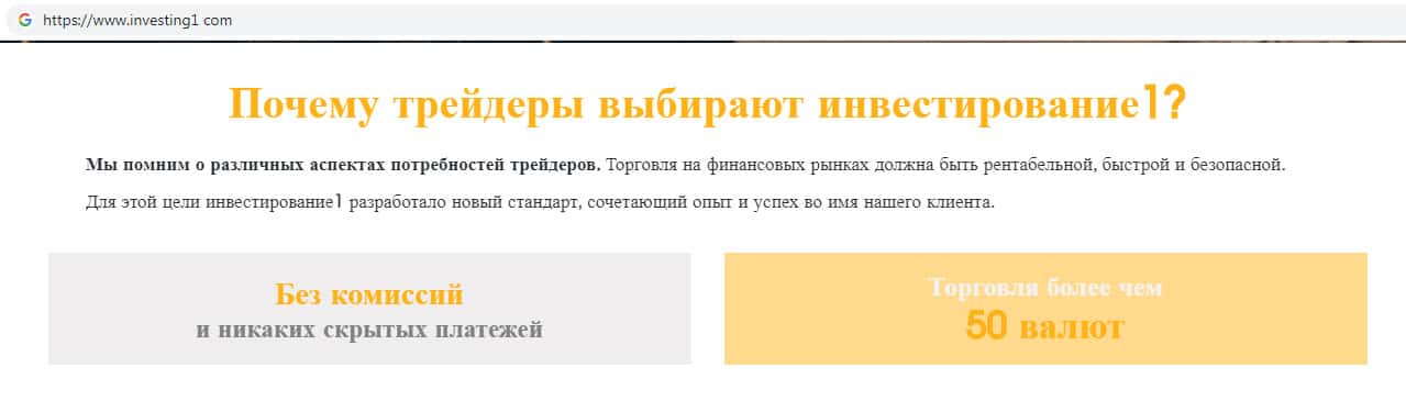 - Веб-ресурс жульнической организации Investing1 разработан как попало