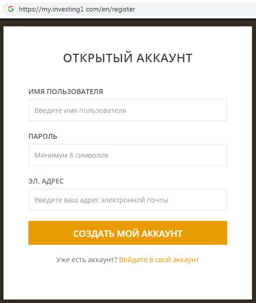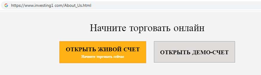 Аферисты Инвестинг1 открыть демо-счет на их дырявом сайте