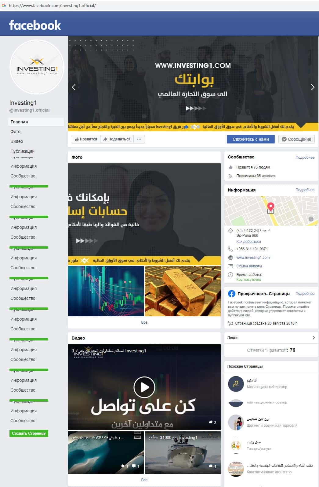 - Аферисты Инвестинг1 зарегистрировались во всемирной социальной сети Фейсбук