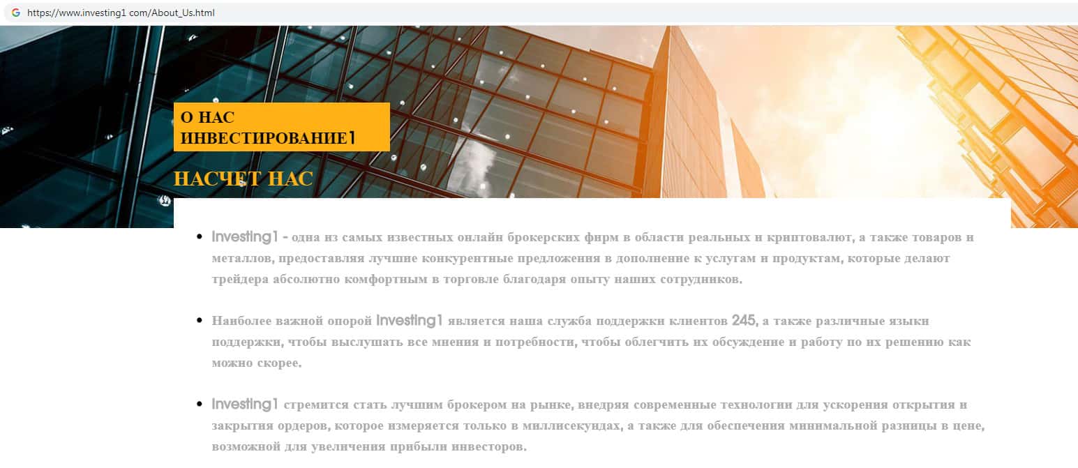- Жулики Investing1 придумали историю возникновения своей организации для того, чтобы казаться надежной компанией