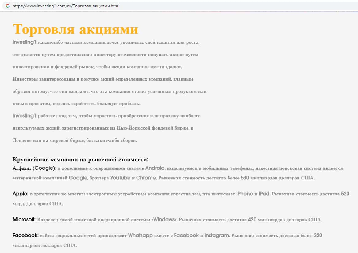 - Новости мирового финансового рынка на онлайн-сервисе мошеннической организации Investing1