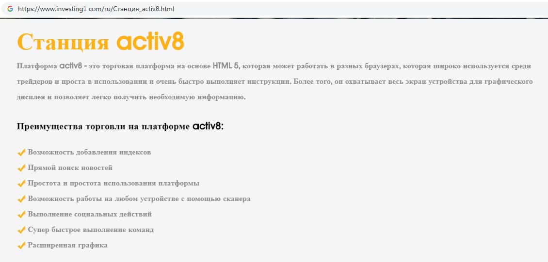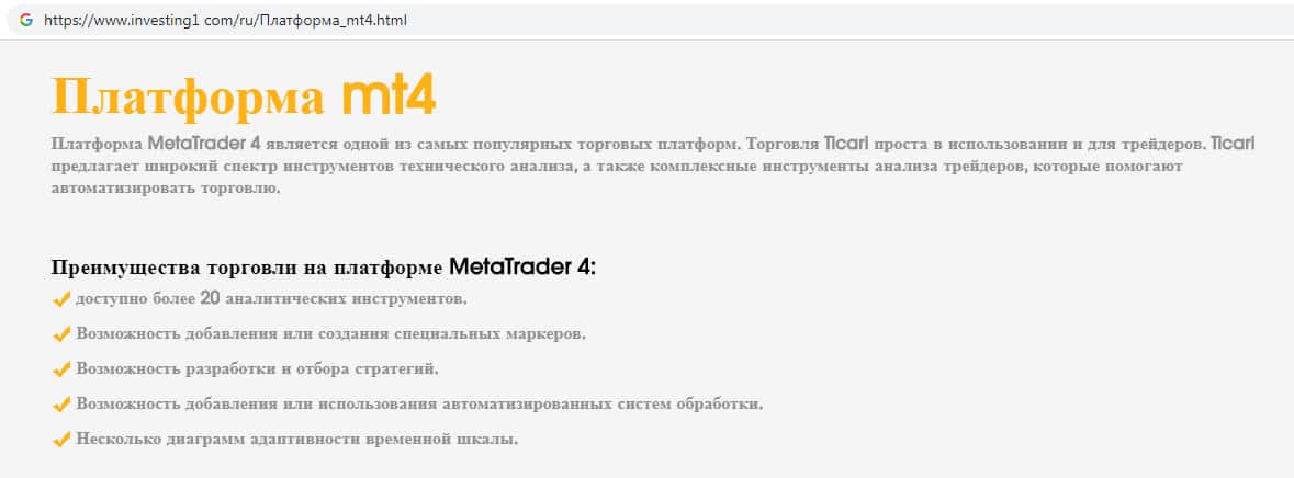 Торговая платформа на сайте жульнической конторы Инвестинг1