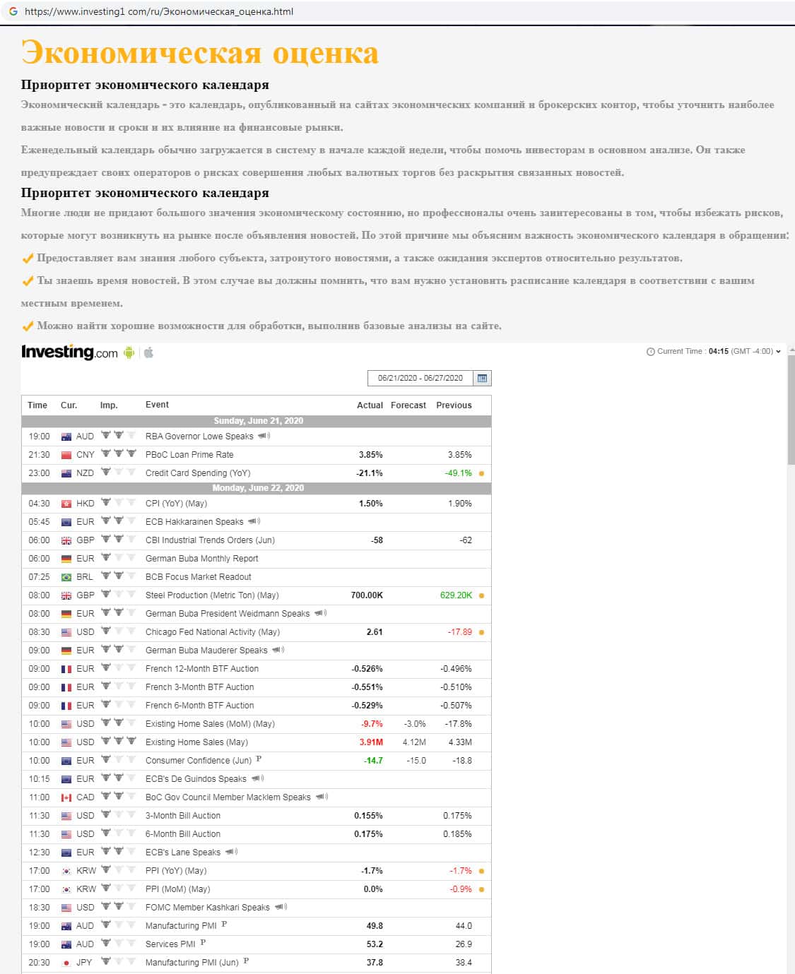 - Экономический календарь на онлайн-ресурсе аферистов Инвестинг1
