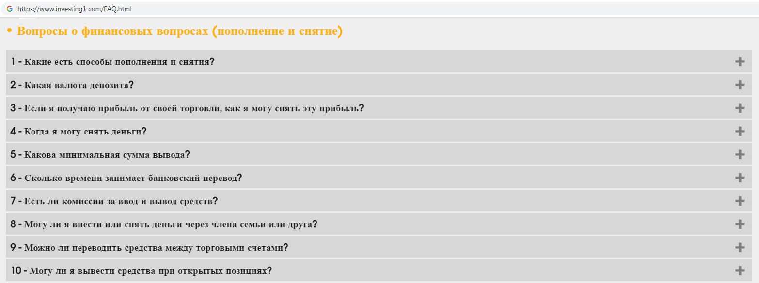 - Аферисты Инвестинг1 заранее подготовили ответы на якобы часто задаваемые вопросы