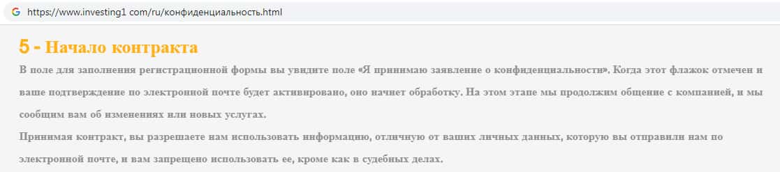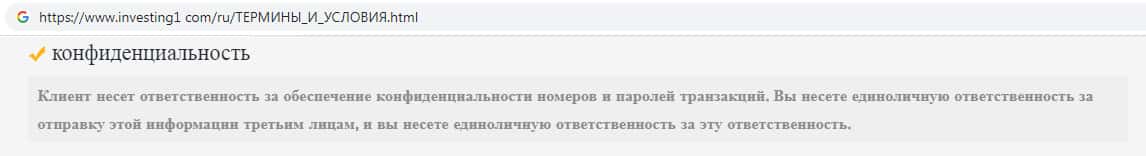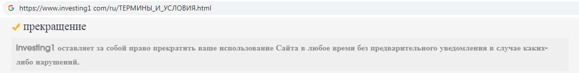 - Условия пользования сайтом псевдо-брокерской организации Инвестинг1