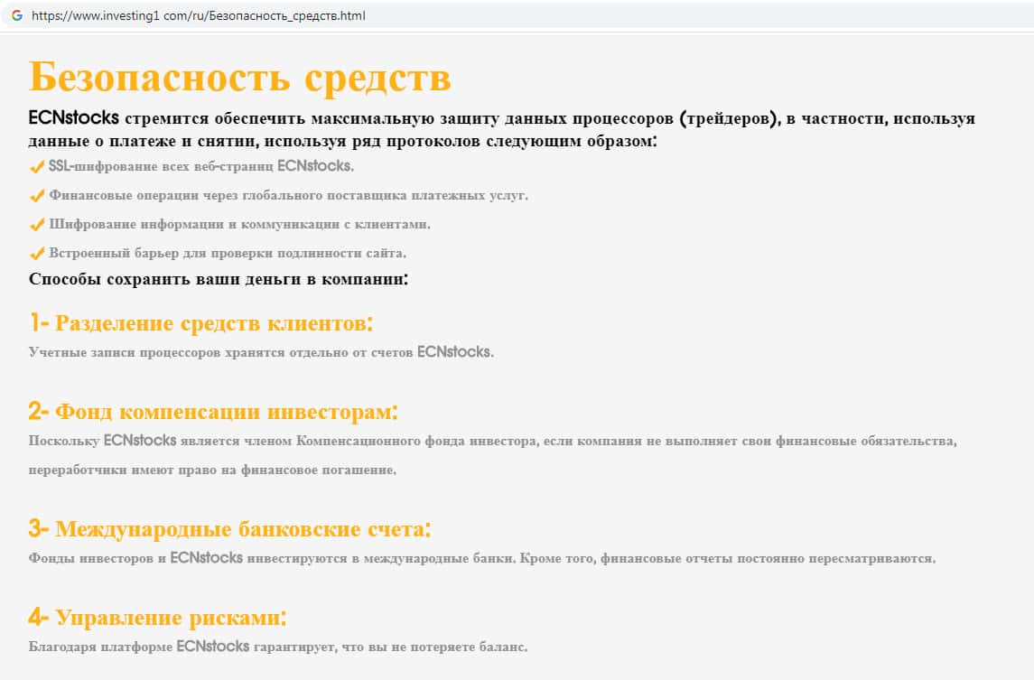- Аферисты Investing1 вешают лапшу на уши о безопасности и сохранности денежных средств