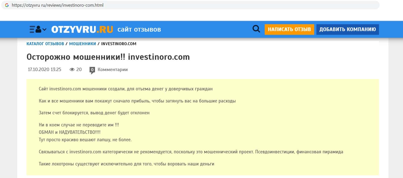 otzyvru ru - сайт с информацией о жуликах Investinoro